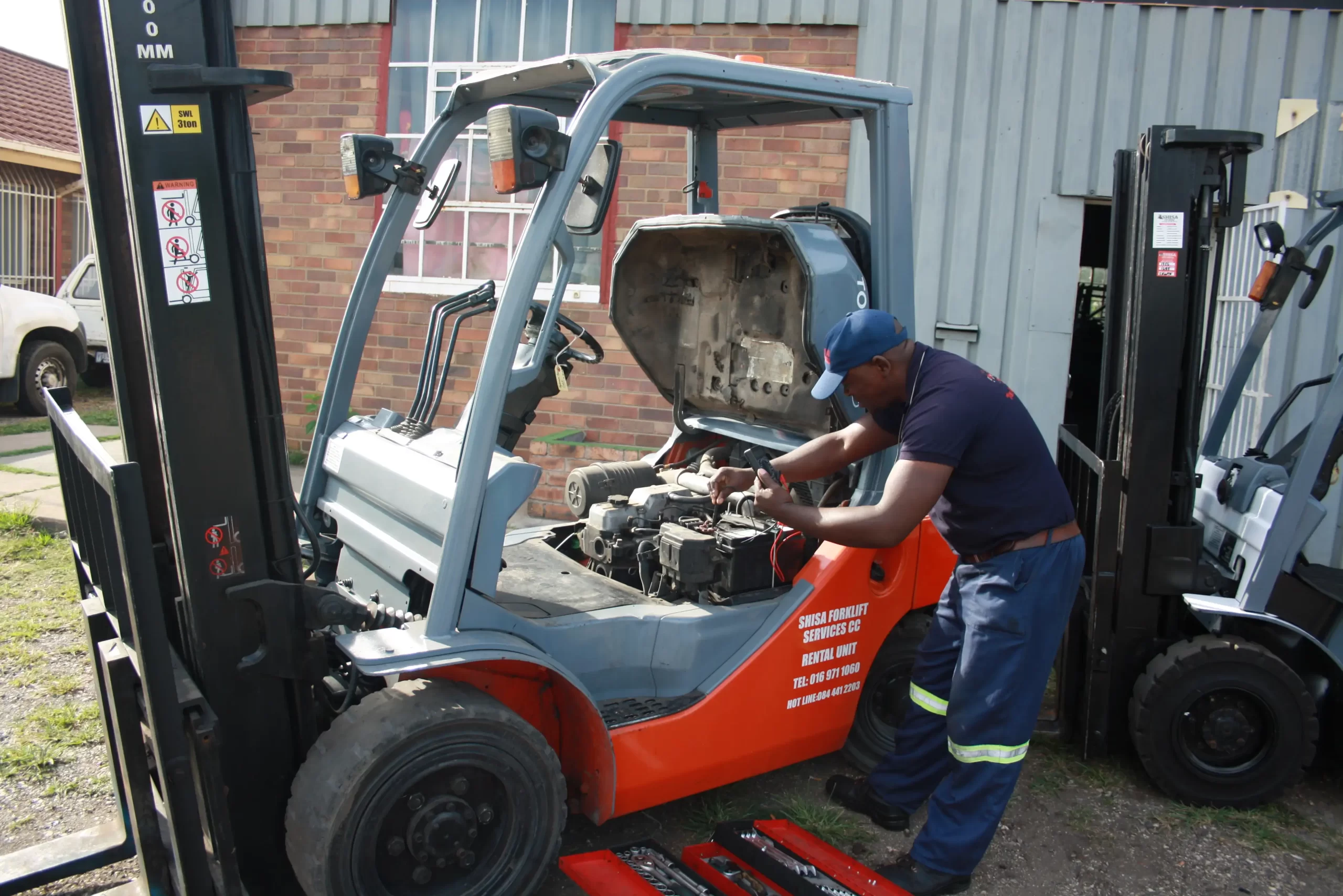 At Shisa forklift and fleet services CC, we’re not just selling forklifts; we’re elevating businesses, one lift at a time. Born from 14 years of greasy hands and hard work, our mission is to keep you moving. Our forklifts are tough, our services are swift, and our humour, well, that’s just a bonus. We’re here to lift more than just your cargo.